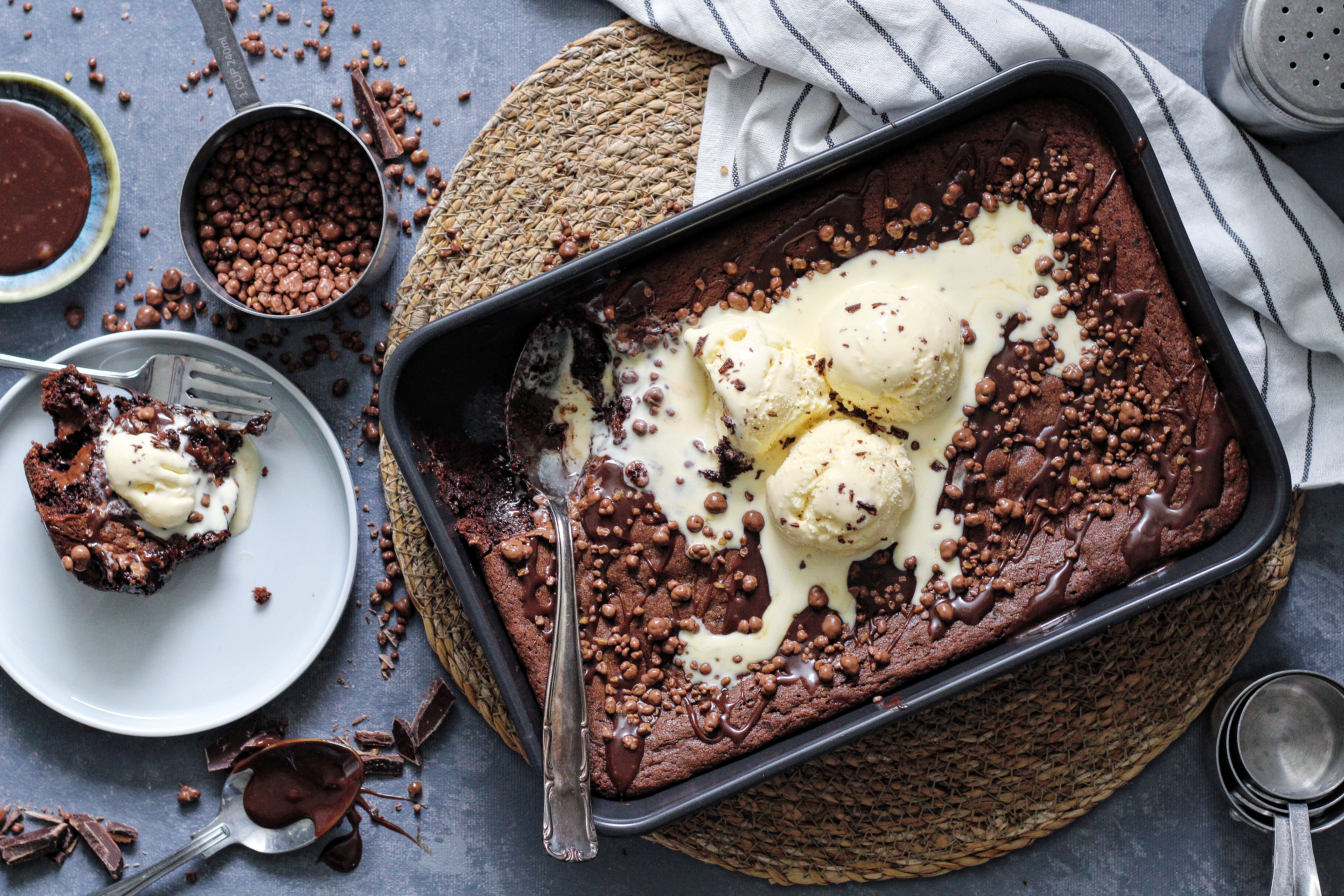 Ef þig vantar eitthvað fljótlegt til þess að bera fram í saumó, eftirrétt í matarboðið eða eitthvað ljúffengt í afmælisveisluna þá er þessi baka alveg fullkomin. Hún er algjör draumur fyrir sanna unnendur súkkulaðis enda algjörlega nóg af því hér.