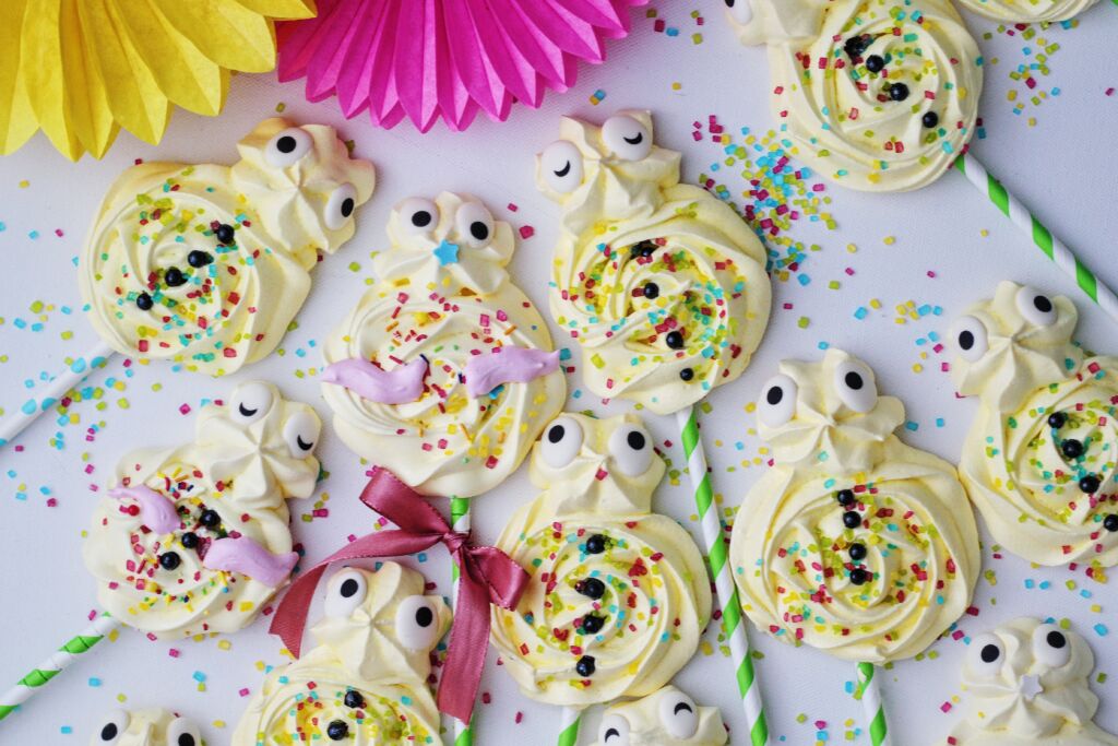 Litríkir marengs páskaungar á pinna