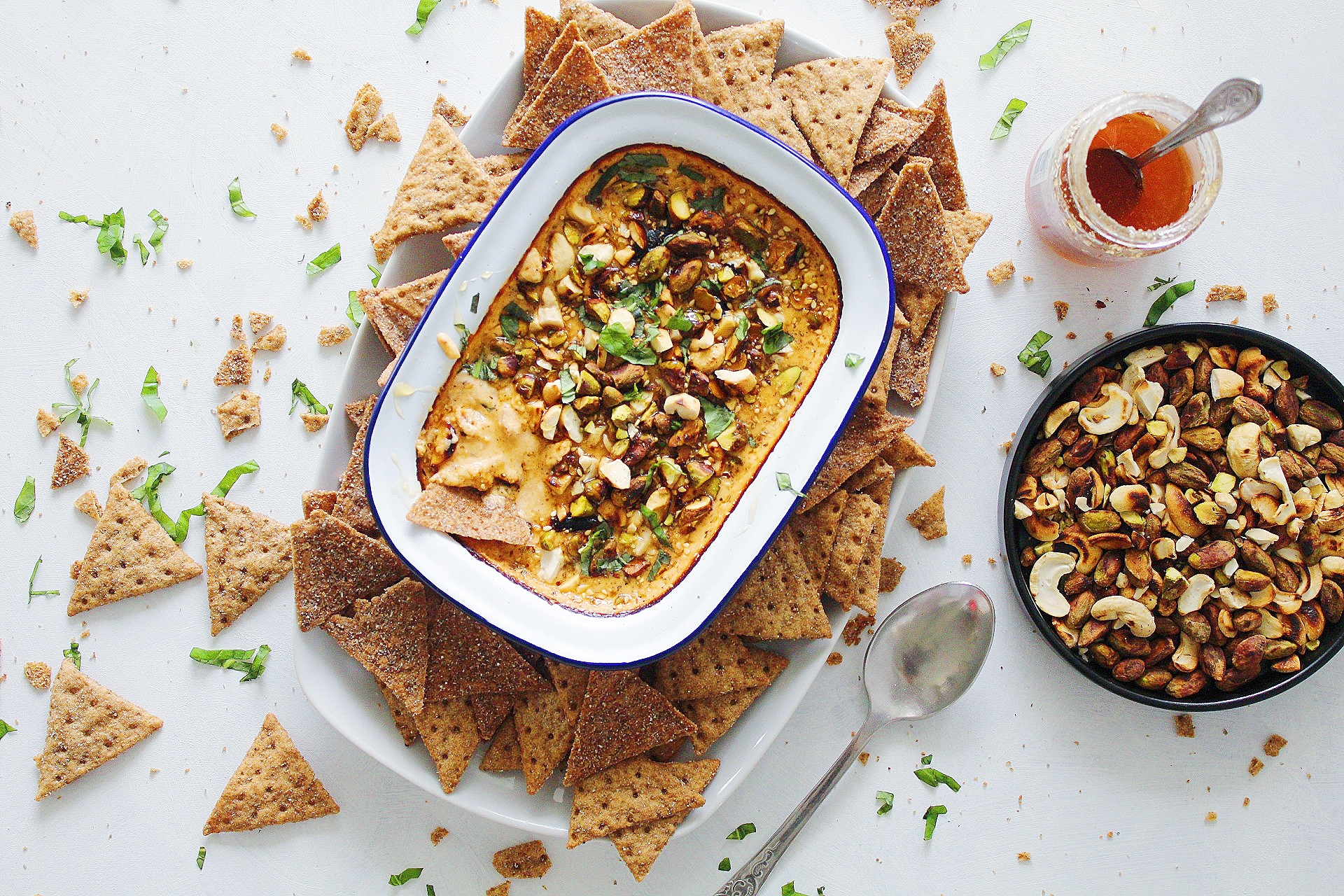 Fetaostaídýfa með chili-hunangi & ristuðum hnetum
