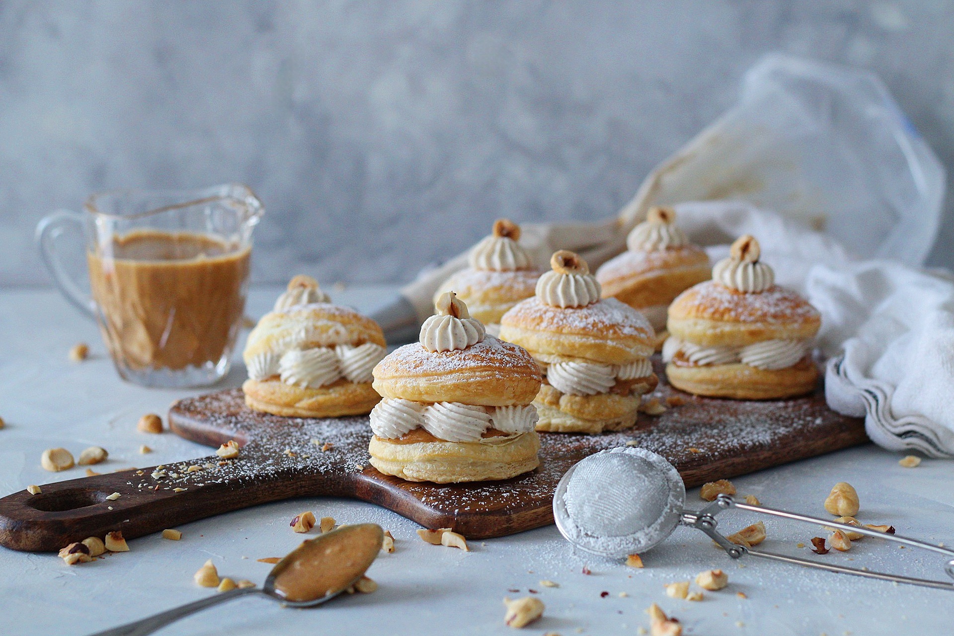 Vegan Paris-Brest bollur með pralíni og vanillurjómakremi